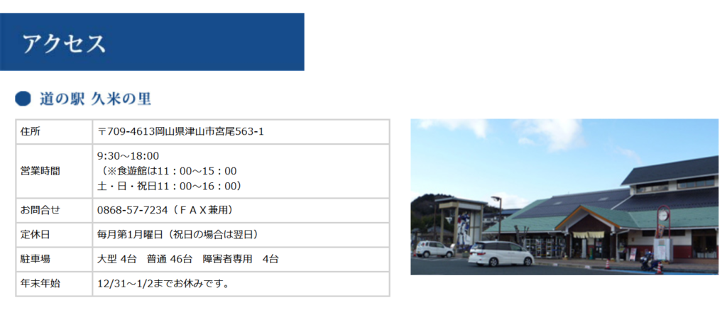 岡山県で車中泊におすすめの道の駅①道の駅 久米の里
